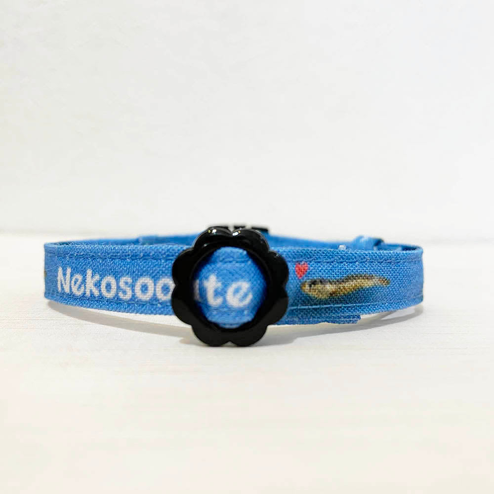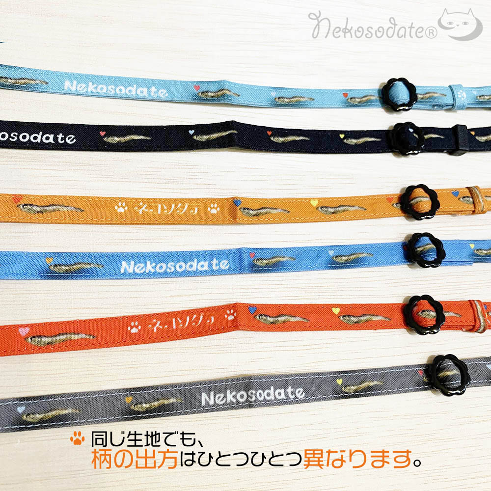 【にぼし柄ブルー】まじめな首輪-なじむストレート/ 選べるセーフティバックル 猫用首輪 安全首輪