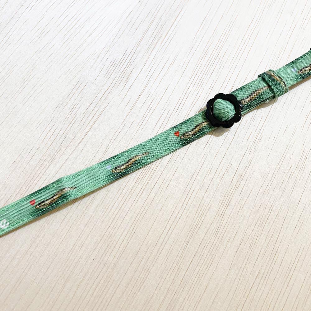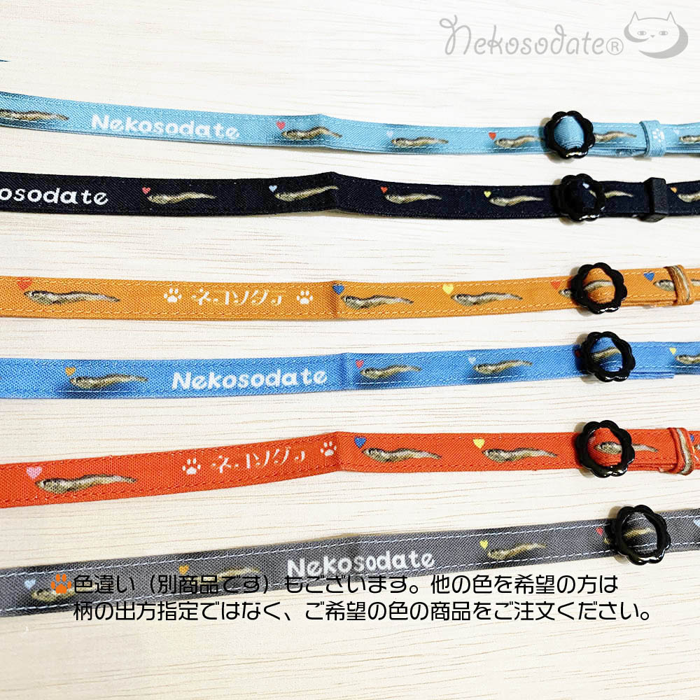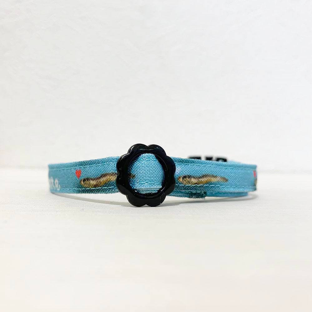 【にぼし柄ライトブルー】まじめな首輪-なじむストレート/ 選べるセーフティバックル 猫用首輪 安全首輪