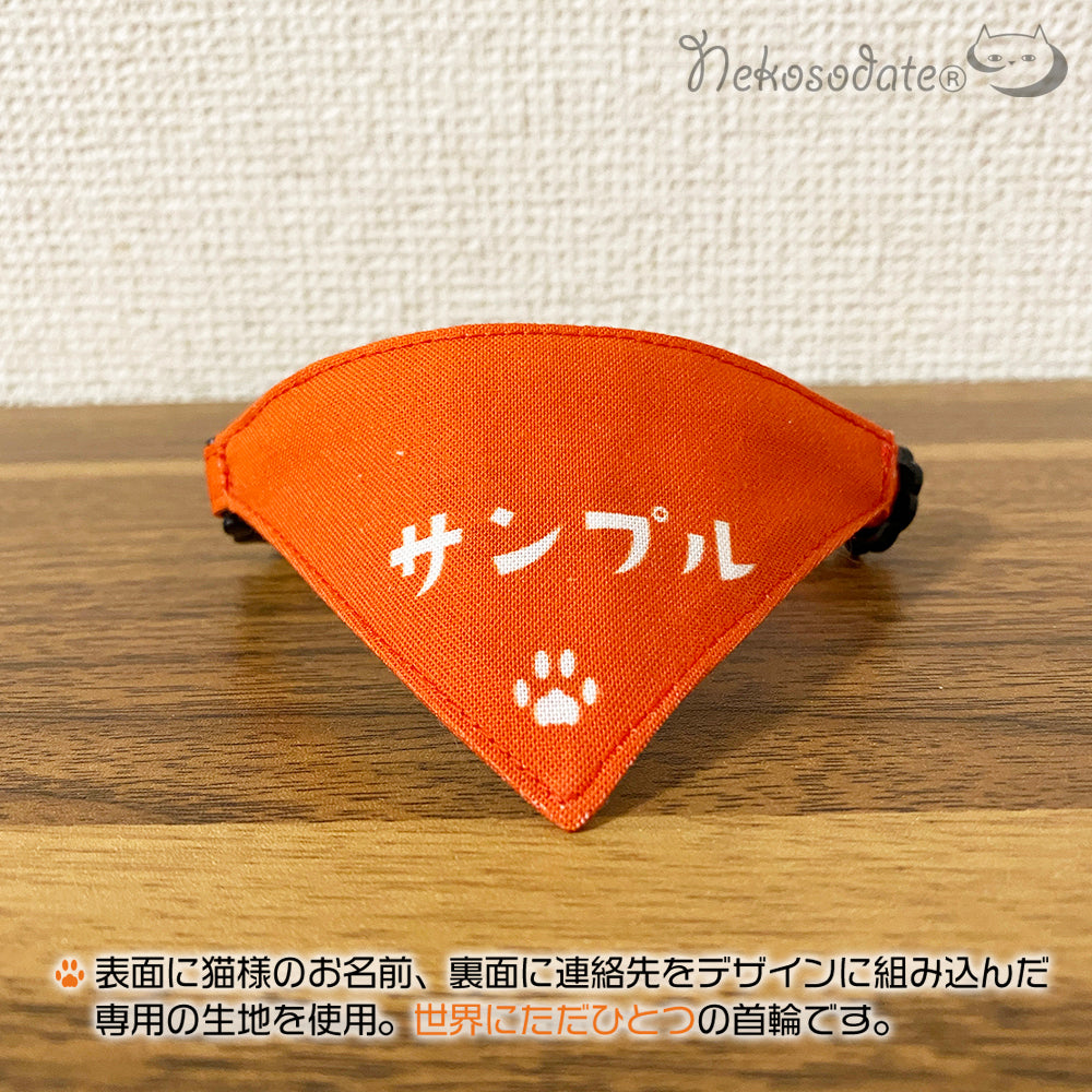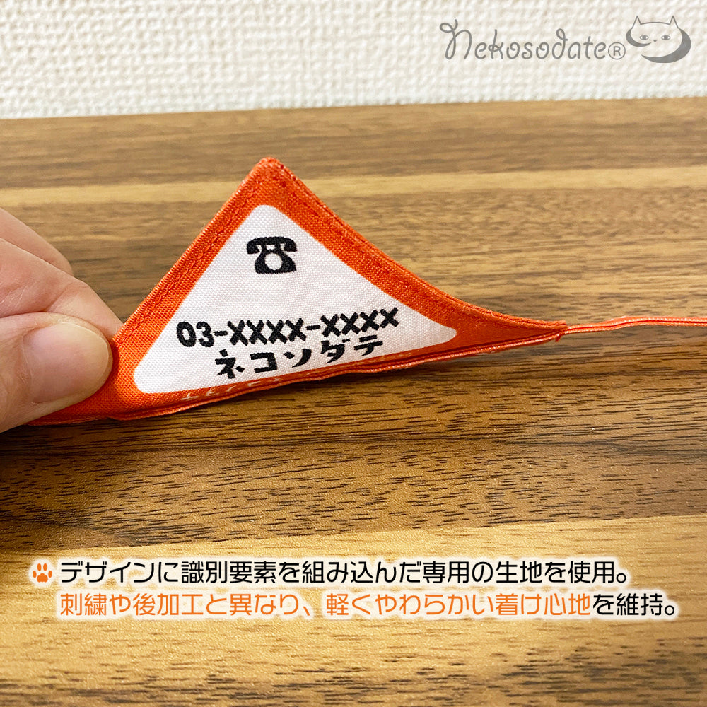 A bandana-like shape that aims to distinguish you from a domestic cat even from a distance if you get lost. Various patterns are available so that individual identification by pattern is easy and the characteristics of the pattern are easy to convey.