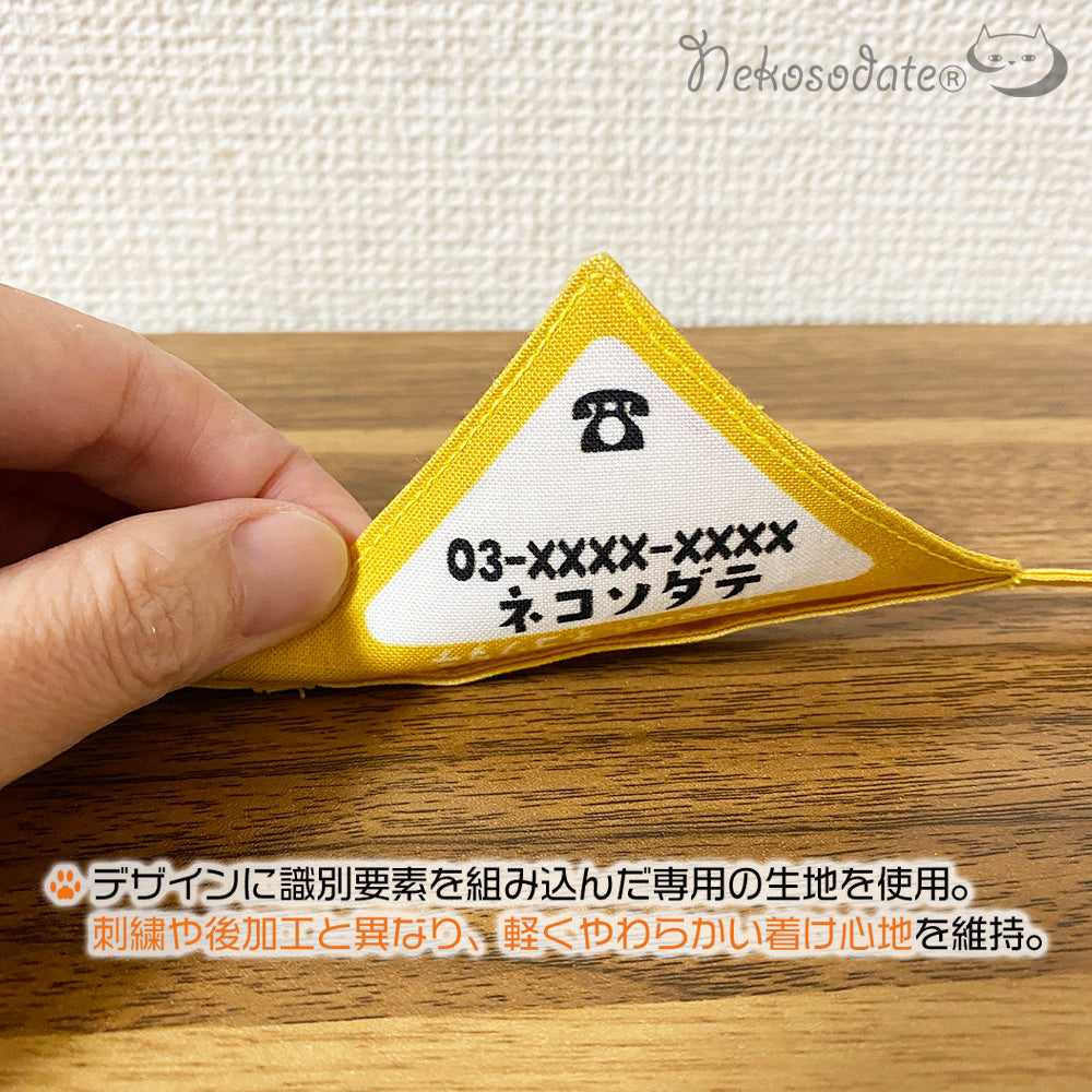 A bandana-like shape that aims to distinguish you from a domestic cat even from a distance if you get lost. Various patterns are available so that individual identification by pattern is easy and the characteristics of the pattern are easy to convey.