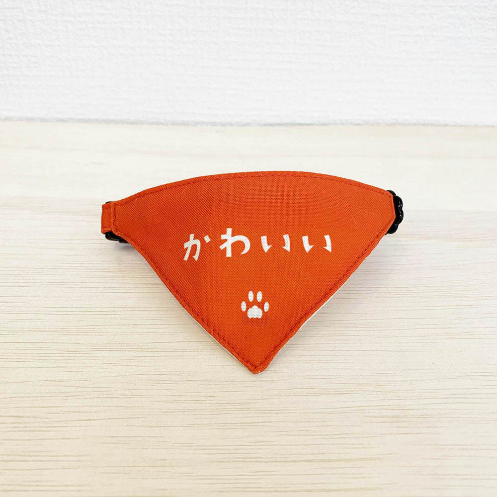 【かわいい柄レッド】まじめな首輪・目立つバンダナ風 ポエムシリーズ・セルフニャン/選べるセーフティバックル 猫首輪