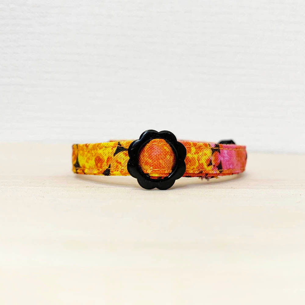 【きらめきサークル柄オレンジ】まじめな首輪-なじむストレート/ 選べるセーフティバックル 猫用首輪 安全首輪