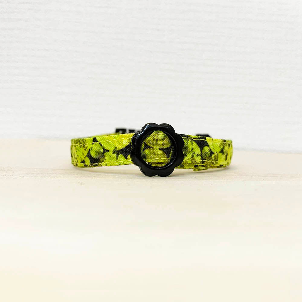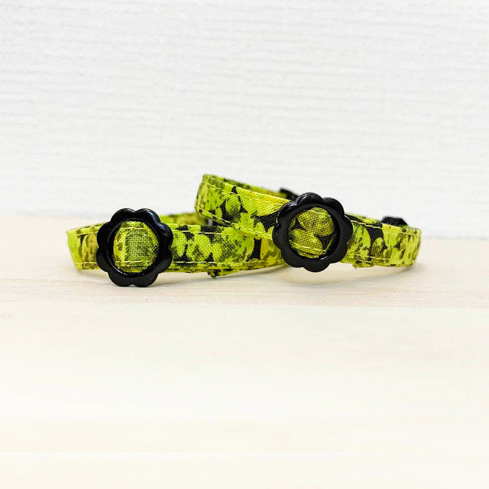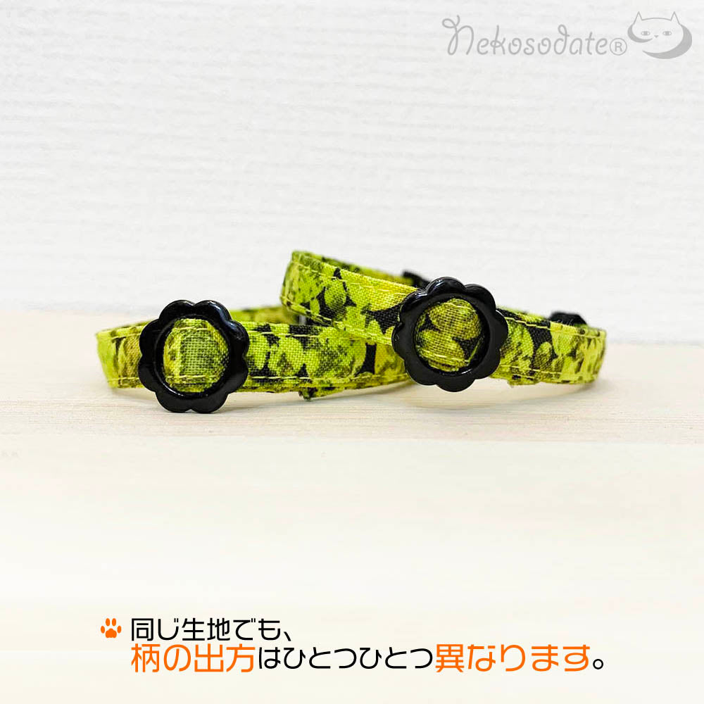 【きらめきサークル柄グリーン】まじめな首輪-なじむストレート/ 選べるセーフティバックル 猫用首輪 安全首輪