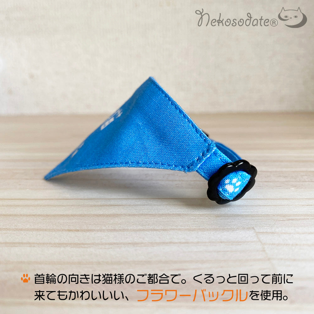 ★期間延長10/14まで・11月下旬納期【オンリーニャン・ブルー/選べるアイコン】まじめな首輪・目立つバンダナ風/選べる安全バックル 猫首輪