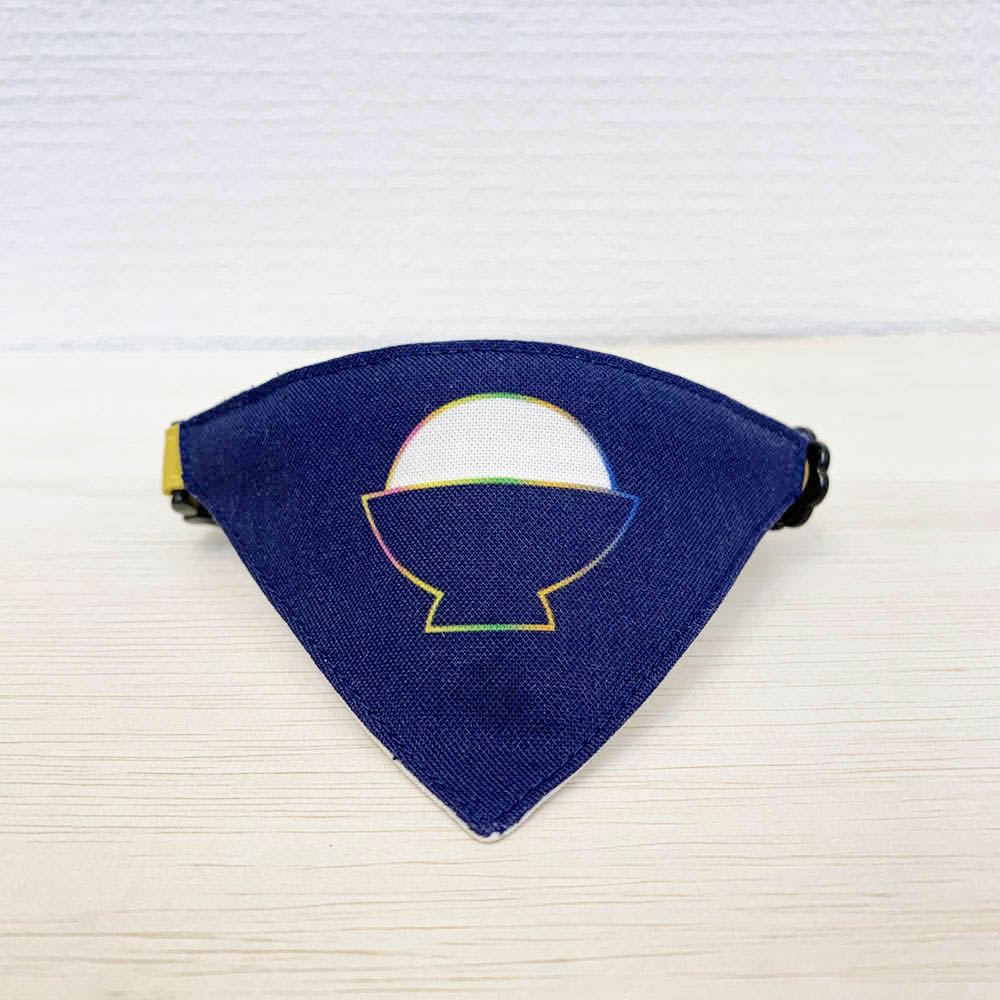 【ネオンごはん柄】まじめな首輪・目立つバンダナ風 裏に連絡先が書けるセルフニャン(ポエム) 猫 首輪 セーフティ 安全バックル