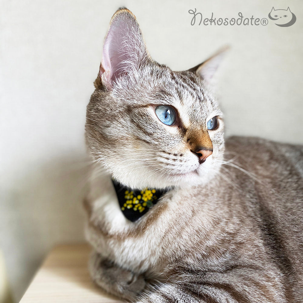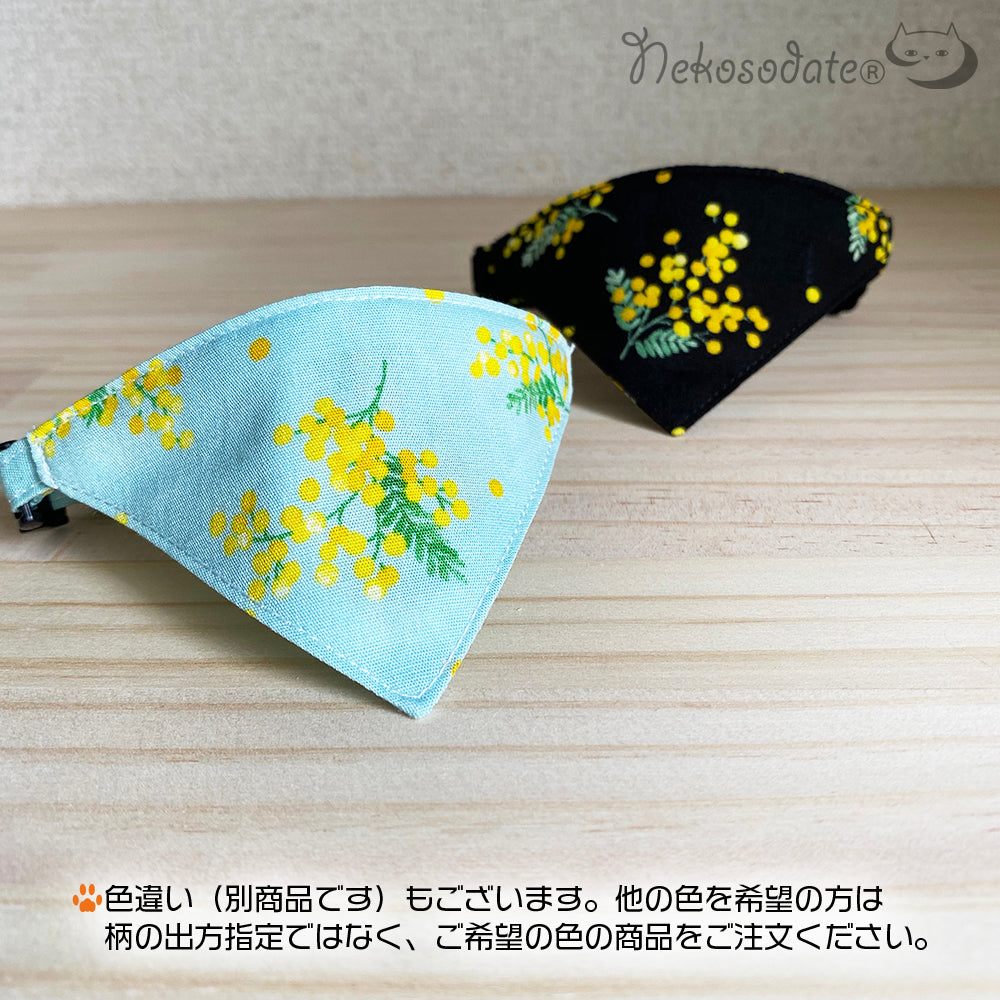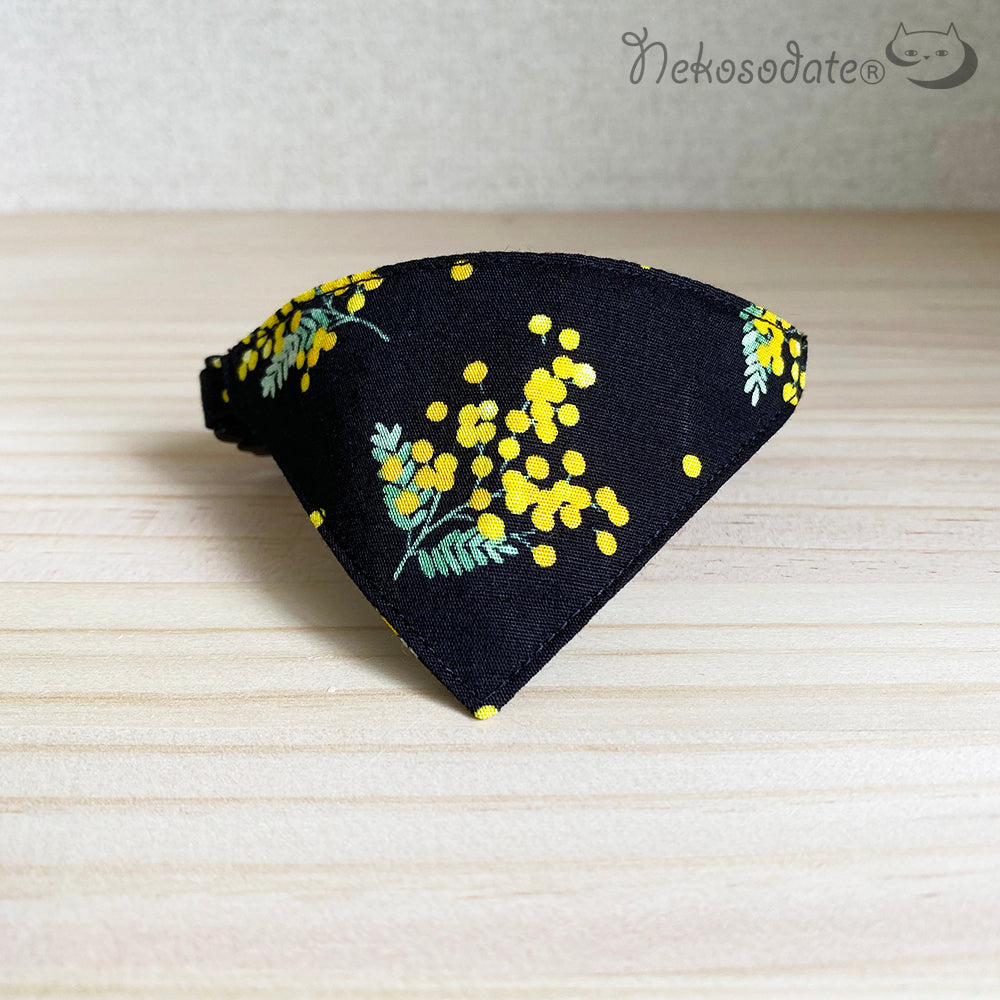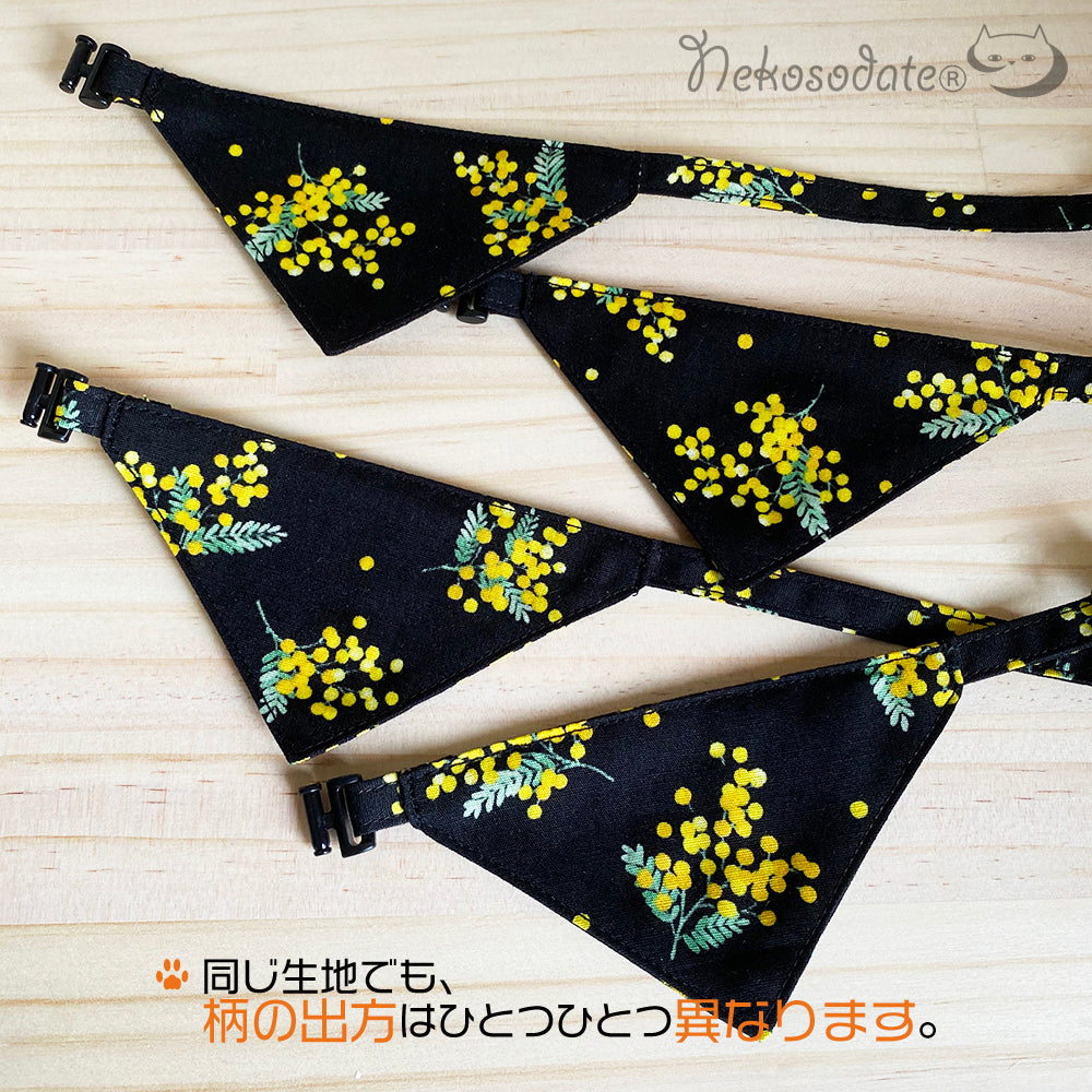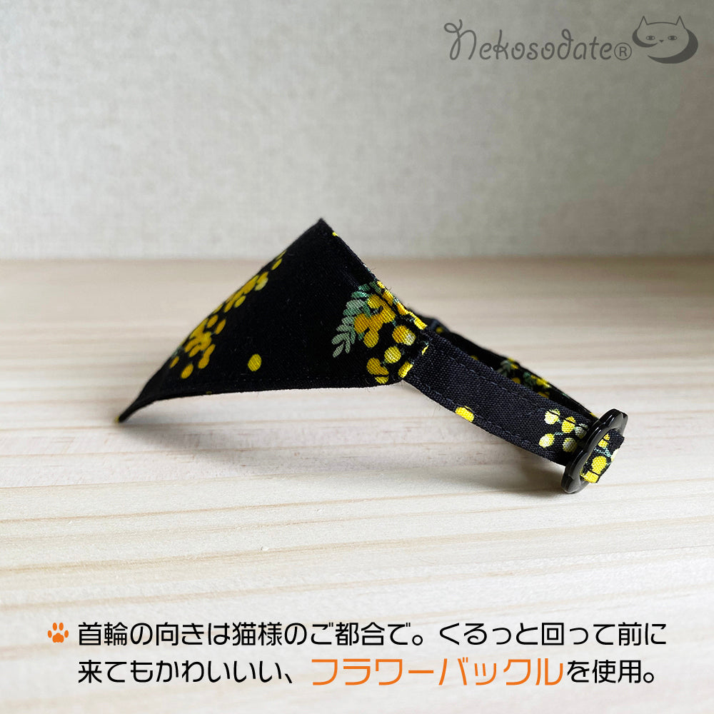 【ミモザ柄ブラック】まじめな首輪・目立つバンダナ風/選べるアジャスター 猫首輪
