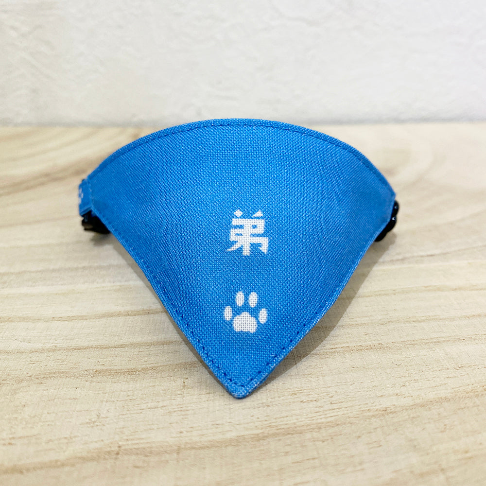 【弟柄ブルー】まじめな首輪・目立つバンダナ風 ポエムシリーズ・セルフニャン/選べるセーフティバックル 猫首輪