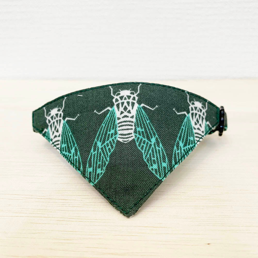 グラフィカルなセミモチーフがモダンなバンダナ風首輪です。