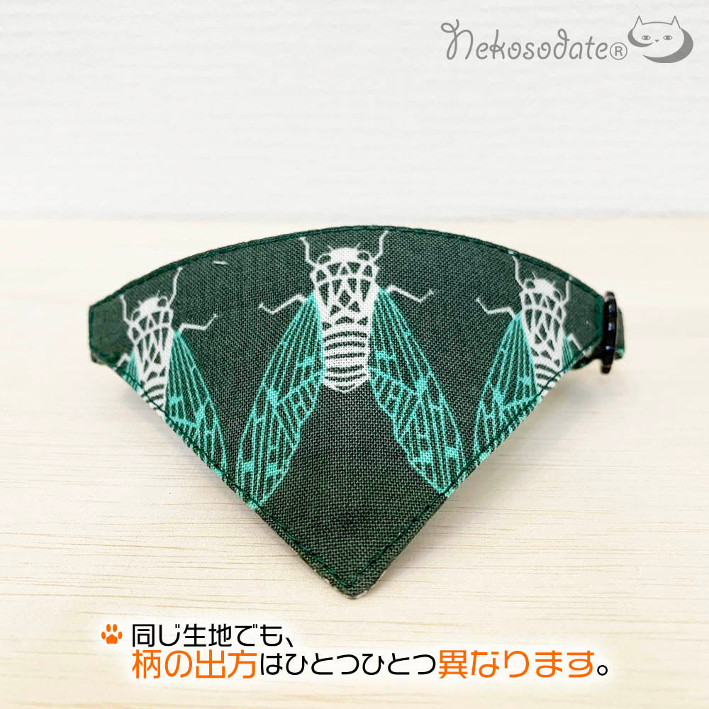 【セミ柄】まじめな首輪・目立つバンダナ風/選べるバックル 猫首輪