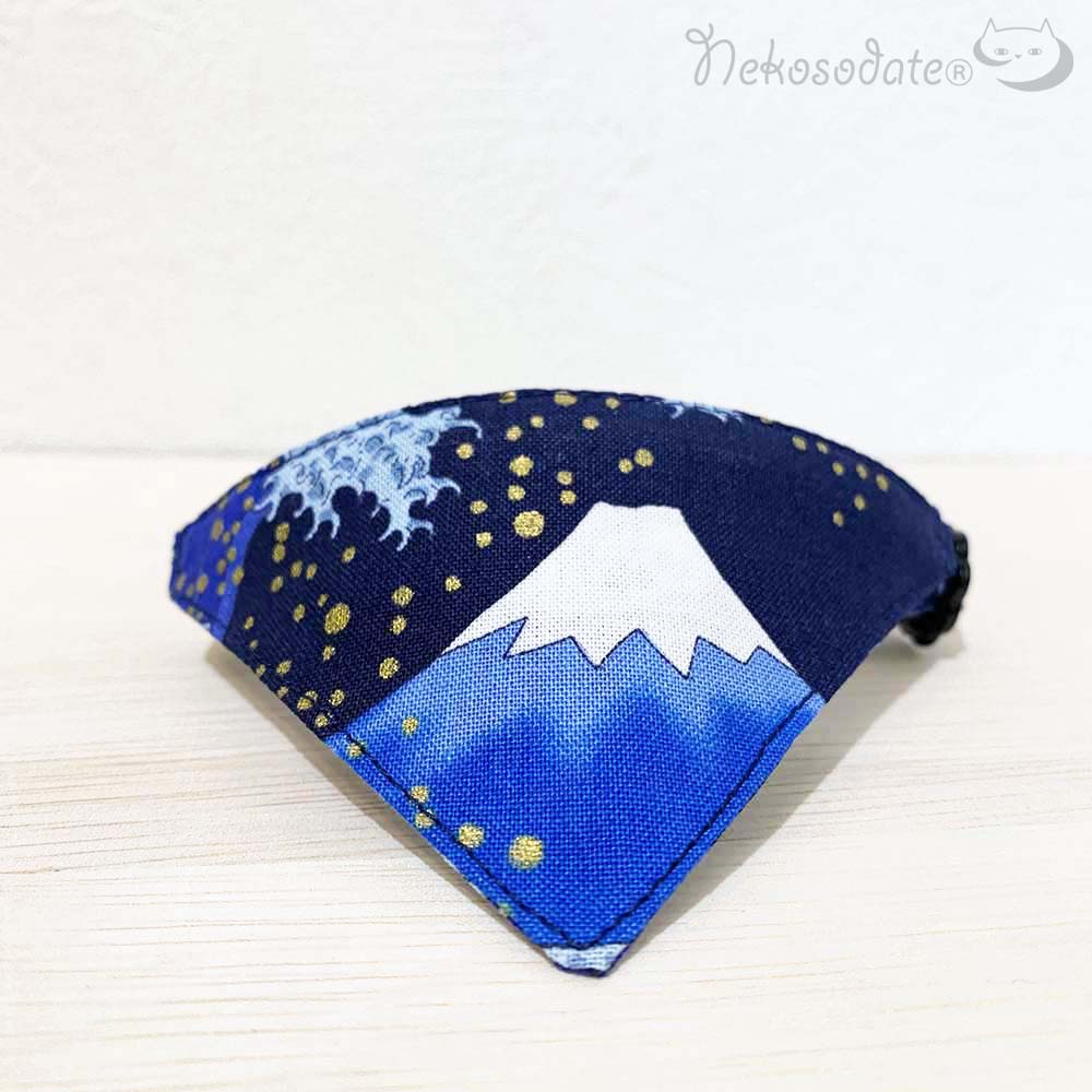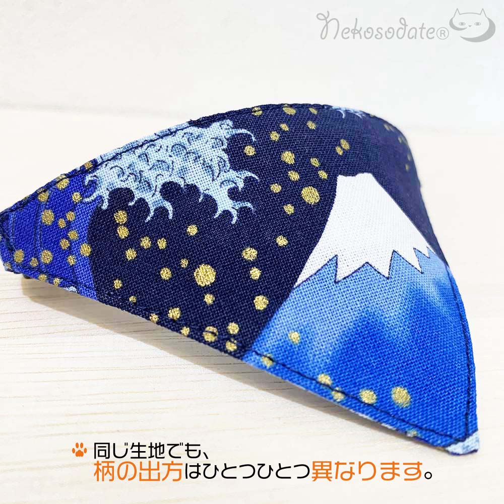【波富士柄ネイビー】まじめな首輪・目立つバンダナ風/選べるバックル 猫首輪