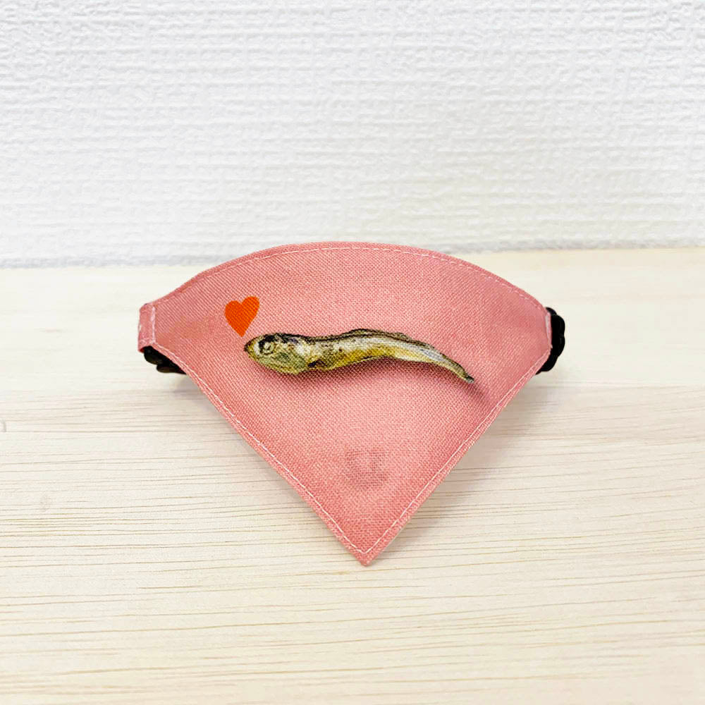 ※1ヶ月半納期【にぼし柄ベビーピンク】まじめな首輪・目立つバンダナ風・セルフニャン/選べるセーフティバックル 猫首輪